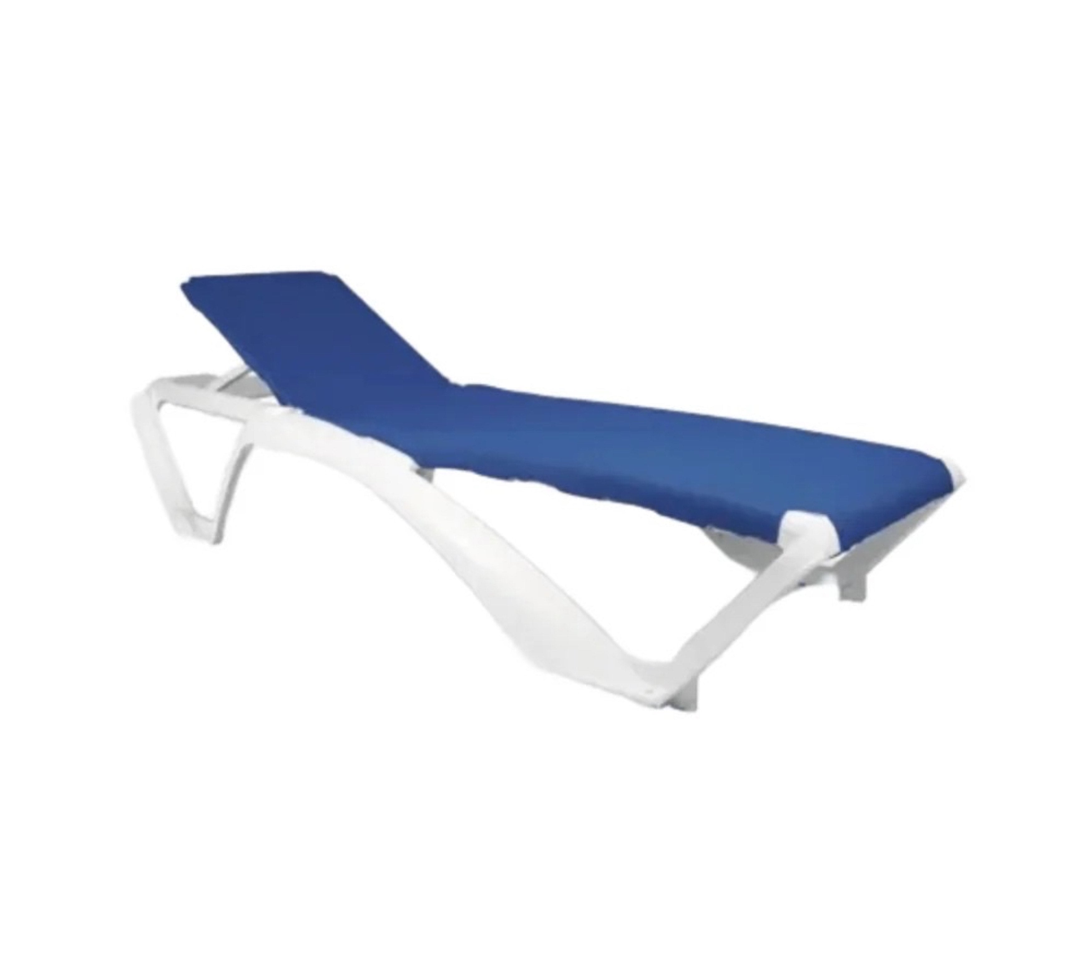 Tumbona apilable con estructura de polipropileno y fibra de vidrio. Textilene de 850 gr/m2, termosoldado, para mayor resistencia, y trama y urdimbre de doble hilo. ProtecciónUV....