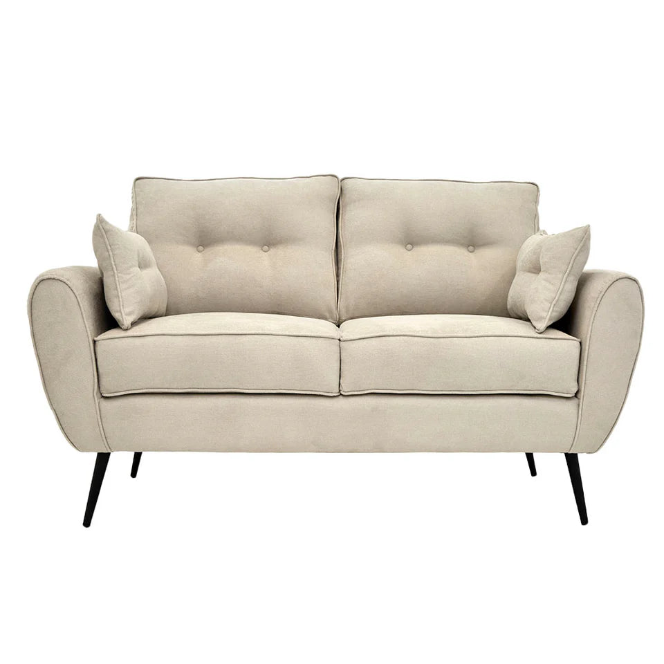 MEDIDAS: 148cm (Ancho)* 90cm (Alto)* 81cm (Profundo) Mihaela es un sofá de 2 plazas con un seductor diseño retro. Estructura de madera de pino...