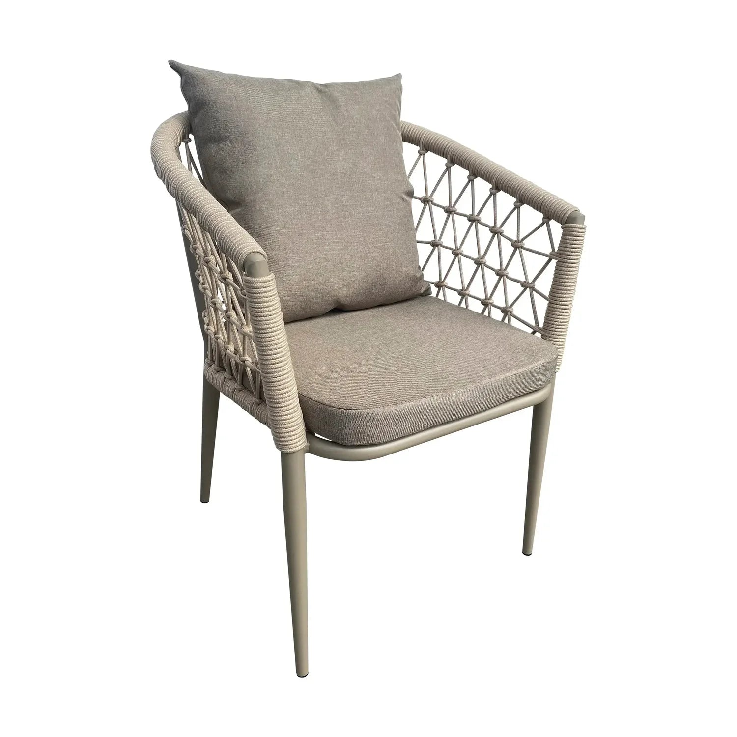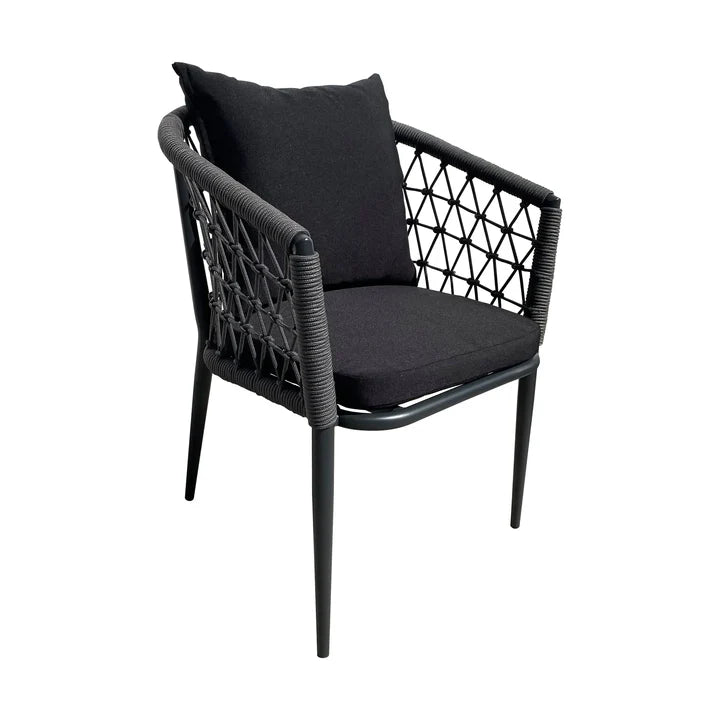 MATERIAL-Estrustura de aluminio-Tejido de rafia entrelazada sintética-Cojines 100% poliéster MEDIDASAltura: 75.5 cmsProfundidad: 63 cmsAncho: 63 cms