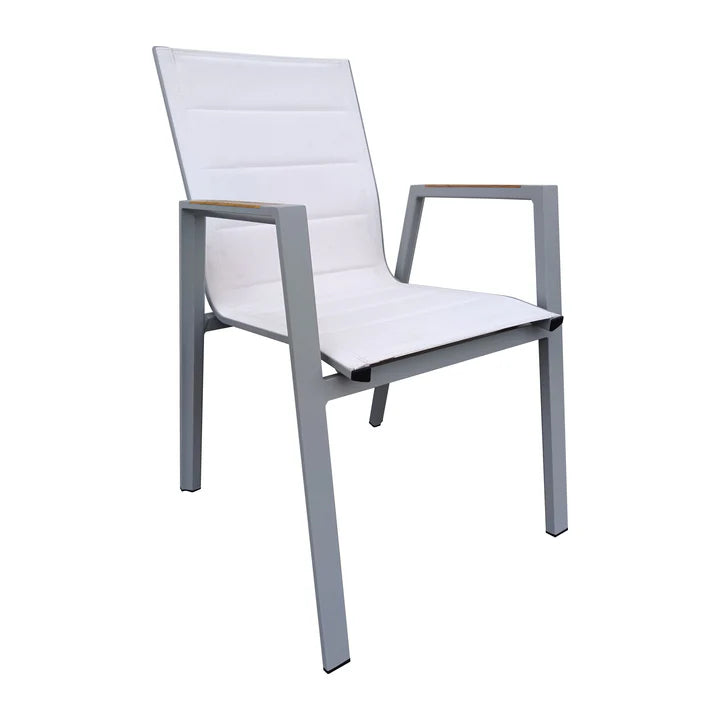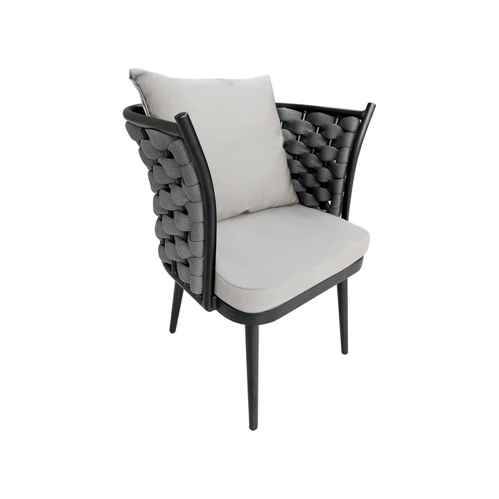MATERIAL -Estrucutura de Aluminio -Tejido 100% poliester -Cojines 100% poliester MEDIDASAlto: 81.5 cmsProfundidad: 61 cmsAncho: 57.5 cms