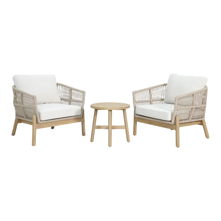 MATERIAL-Estructura de madera Acacia-Cojinería en poliéster-Tejido 100% poliéster MEDIDASSillón individualAlto: 70 cmsProfundidad: 74 cmsAncho: 81 Mesa bistroAlto: 47 cmsDiámetro: 50 cms
