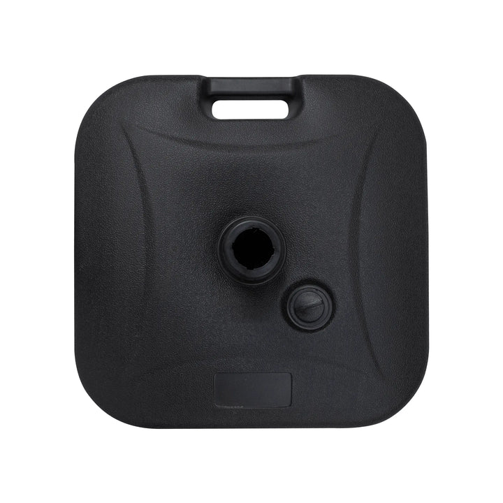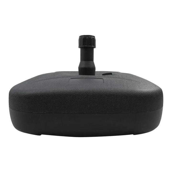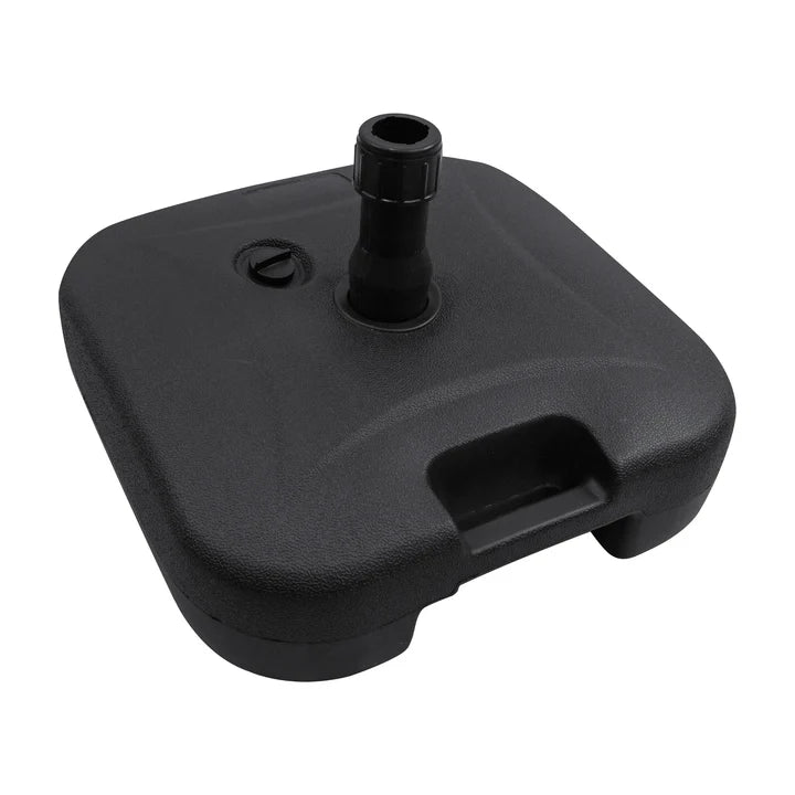 -La base está integrado por un tubo, contiene un tapón para no dejar verter el producto que uses para rellenarla puede ser agua o arena, se recomiendan ambas si no la moverás.