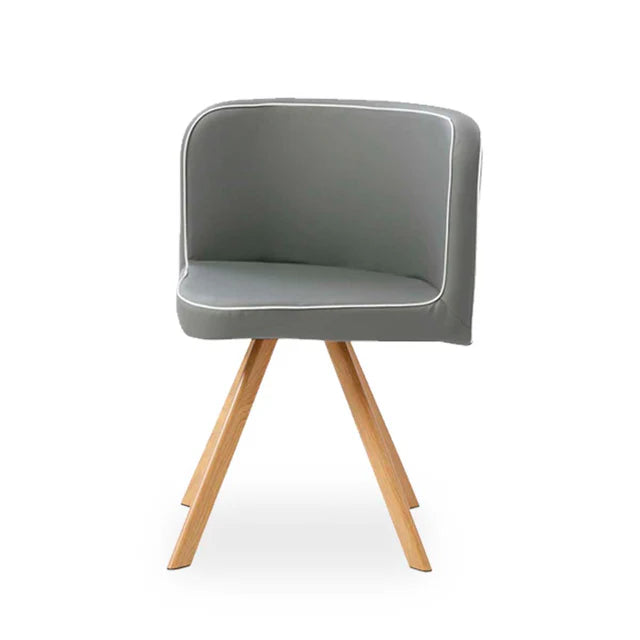 Mesa de cristal templado con patas de metal efecto madera. 4 sillas con respaldo y asiento en cuero sintético. Patas de metal efecto madera