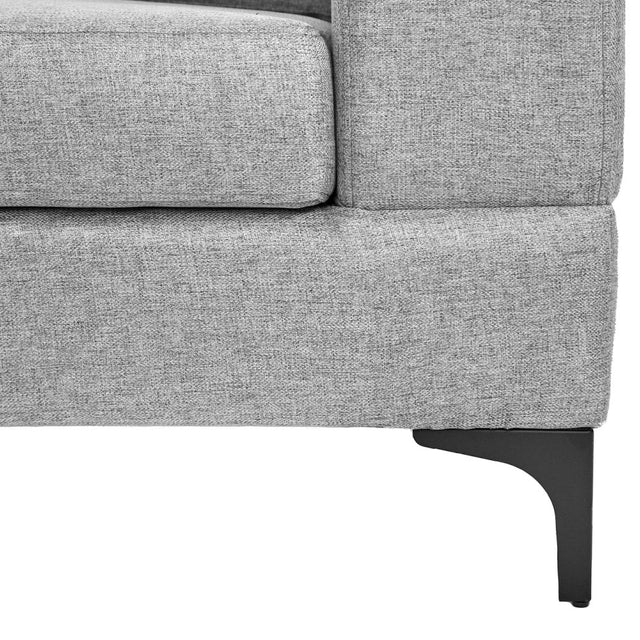 Estructura de madera de pino de primera, horneada y sin nudos, con conjuntos reforzados en esquinas y con cargadores adicionales. El conjunto impide la fatiga de la estructura evitando que el mueble se rechine o incluso se pueda llegar a fracturar. El acojinamiento es de hule espuma que excede los 30kg de densidad, siendo 24kg el estándar recomendado. Las patas de acero cromado. Está tapizado con poliéster de hilo cerrado con respaldo de algodón, lavable. Extremadamente duradero.